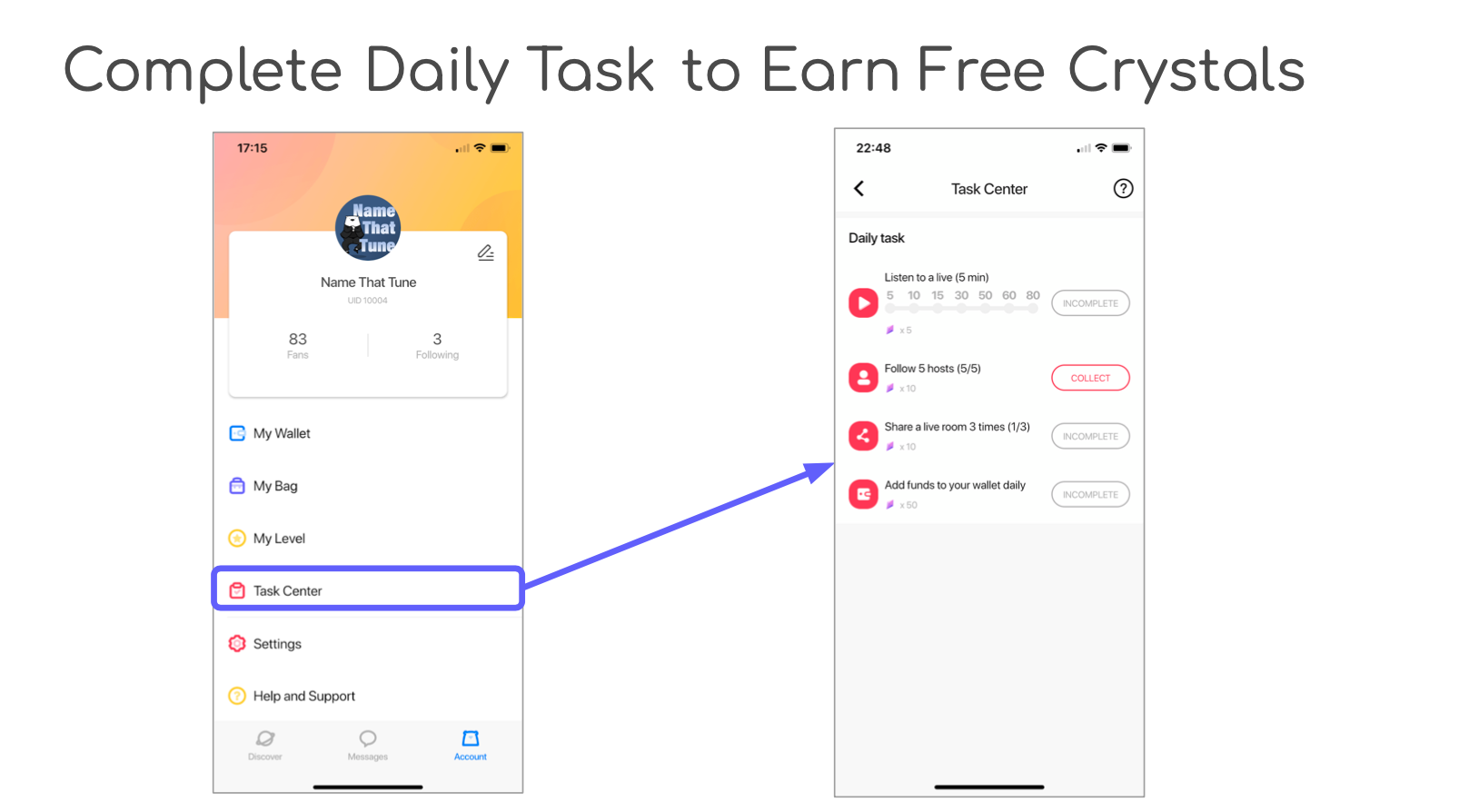 First of all, you needs to complete the new user task list and reach Level 1. And then you will be able to start your own live chat room.